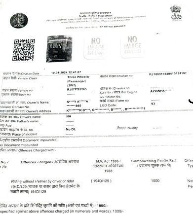 बीकानेर में पिछले कुछ दिनों से सोशल मीडिया पर वायरल ऑटो चालक का हेमलेट नहीं होने का चालान काटने के मामले में अब ट्रैफिक पुलिस ने दी सफाई, कहा – शहर में यातायात व्यवस्था का दबाव होने के कारण ऑनलाइन ई डिवाइस से चालान करते समय कई बार आंकड़ों में ऑटोमेटिक परिवर्तन हो जाता है. पुलिस ने जानकारी दी है कि कई बार मानवीय भूल के कारण भी ऐसा हो जाता है. लेकिन अब ऑटो के इस चालान का शुद्धिकरण किया जा चुका है. यातायात कर्मियों द्वारा एमवी एक्ट के नियमों में उल्लघन करने वाले वाहन चालकों के खिलाफ ई-चालान किया जाता है, आमजन से अनुरोध किया गया है कि भविष्य में ऐसा हो तो यातायात शाखा में सपर्क करें.