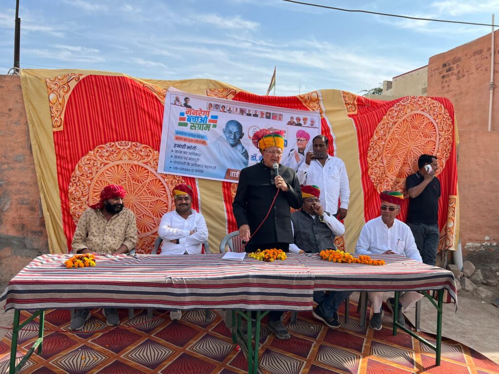बीकानेर में कांग्रेस के मनरेगा बचाओ संग्राम के अंतर्गत आज वार्ड 18 में पूर्व पार्षद प्रत्याशी सुनील सारस्वत और काना राम मूंड के नेतृत्व में सभा का आयोजन किया गया. इस दौरान पूर्व कैबिनेट मंत्री डॉ. बीडी कल्ला, शहर जिलाध्यक्ष मदन गोपाल मेघवाल, पूर्व जिलाध्यक्ष यशपाल गहलोत, तोलाराम सियाग सहित कई नेता शामिल हुए. सभा को संबोधित करते हुए पूर्व मंत्री डॉ. बीडी कल्ला ने कहा कि वर्तमान भाजपा सरकार मनरेगा को बदल कर गरीबों पर अत्याचार कर रही है. पुराने विधेयक में परिवर्तन करके पूर्व में शत प्रतिशत राशि राज्यों को केन्द्र से मिलती थी उसमें कटौती करके 40% राशि राज्यों को देने पर 60% राशि राज्यों में केंद्र प्रदान करने का फैसला इस योजना को कमजोर करने जैसा है. इस परिवर्तन का राजस्थान उतर प्रदेश, मध्य प्रदेश, बिहार पंजाब बंगाल सहित सभी राज्यों में व्यापक प्रभाव पड़ेगा.